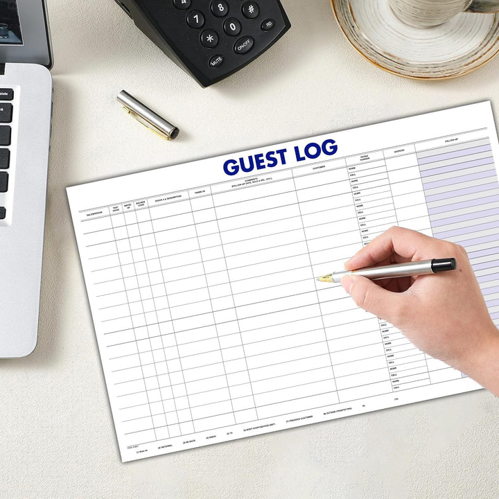 Track guest interactions and elevate customer engagement with our meticulously designed Guest Log. This indispensable tool empowers your business to efficiently capture and manage guest information, fostering seamless follow-up procedures and strengthening client relationships. With 100 sheets per pad, you'll never run short on space to document crucial details and subsequent actions. The log's generous 17" × 11" dimensions strike the perfect balance between providing ample writing space and ensuring convenient portability for versatile use across different business environments. Crafted to exude professionalism, this log book presents your business in the best light possible, regardless of its size, leaving a lasting impression on guests. Utilize the structured format of the log to streamline follow-up processes, ensuring that no lead or inquiry slips through the cracks. Elevate your customer service standards and optimize guest interactions with our comprehensive Guest Log, an essential addition to any business toolkit.