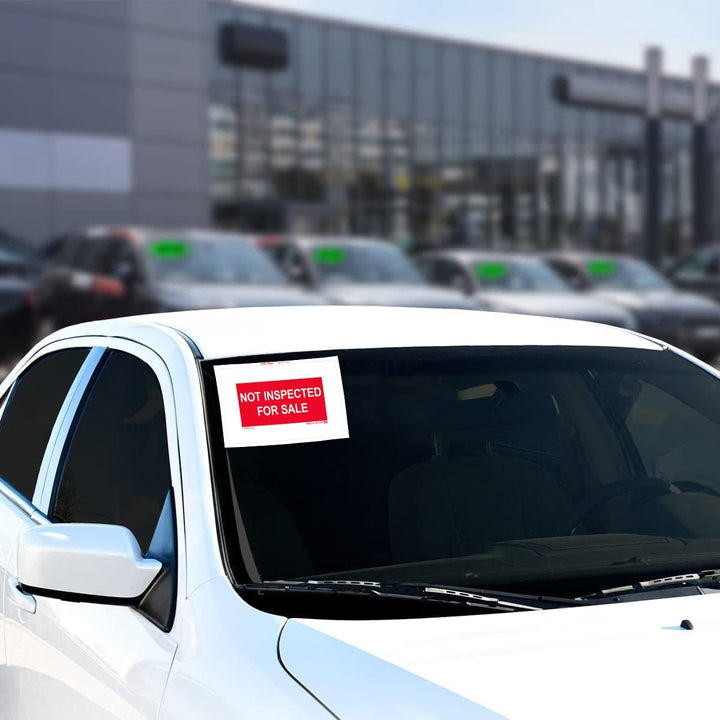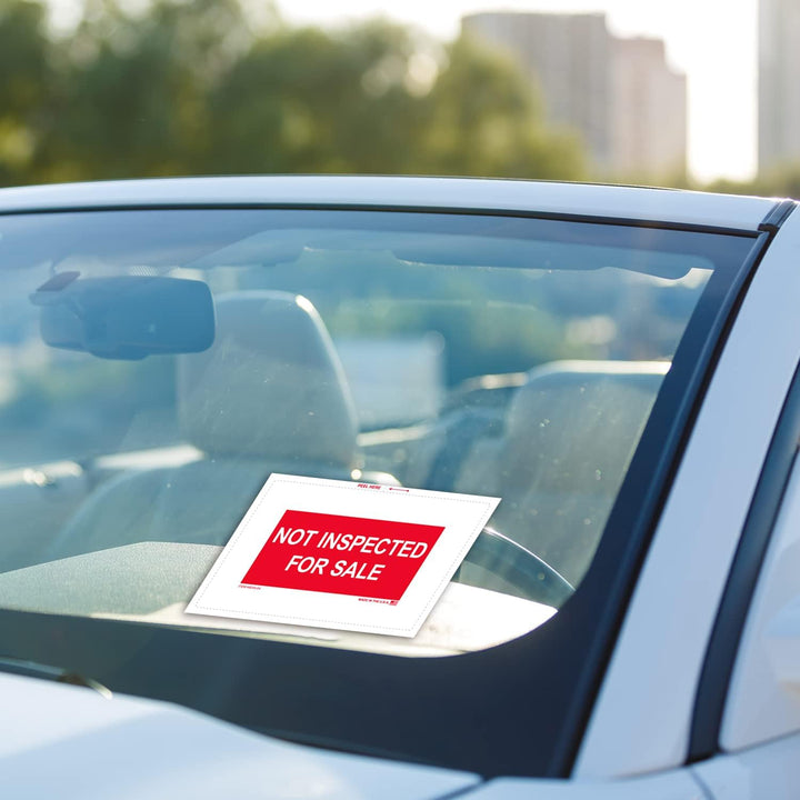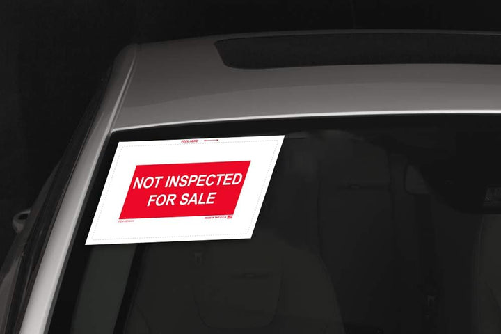 Ensure transparency and trust in your dealership's sales process with our "Not Inspected for Sale" Vehicle Stickers. Measuring 8" × 5-1/4", these stickers are designed to be installed on the inside of the vehicle window, ensuring clear visibility from the outside. Crafted with a clear and concise design, our stickers effectively communicate to potential customers that the vehicle has not yet undergone inspection. With a peel-and-stick application, our stickers are easy to install by dealership staff, saving time and effort. The prominent display of the "Not Inspected for Sale" message helps manage customer expectations and prevents misunderstandings, enhancing overall satisfaction and trust in your dealership. Our stickers are not only practical but also professional in appearance, maintaining a polished image for your dealership while ensuring transparency in your sales process. With their optimal size, clear visibility, and easy installation, these stickers are the perfect solution for conveying important information about the inspection status of vehicles.