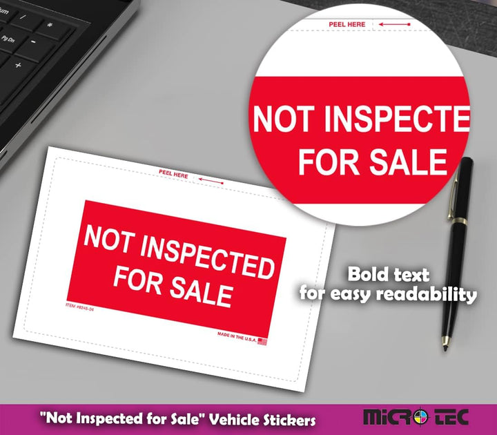 Professional "Not Inspected for Sale" Vehicle Stickers – 8" × 5-1/4" Vinyl Window Decals for Car Dealerships – Inside Window Installation with Outside Visibility