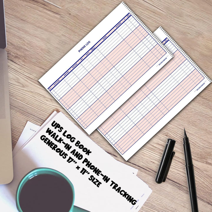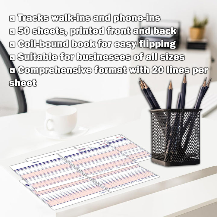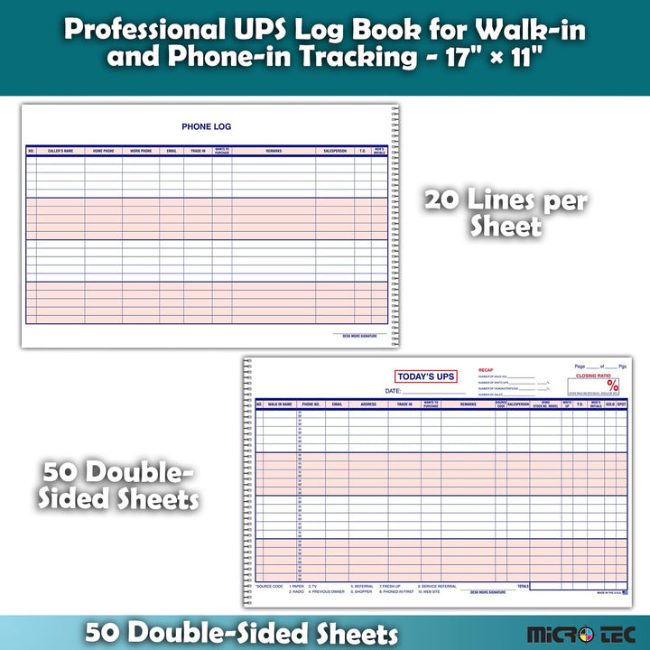 Professional UPS Log Book for Walk-in and Phone-in Tracking - 17" × 11" Coil Bound Customer Contact Log for Increasing Closing Rate - 50 Double-Sided Sheets (20 Lines per Sheet)