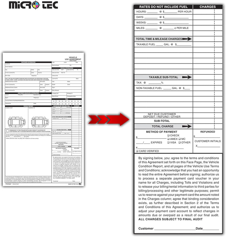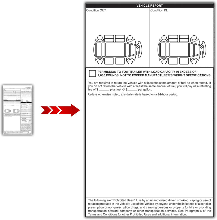 Professional Vehicle Use Agreements for Car Dealerships – 8.5" × 14" 2-Part Carbonless Edge-Glued Forms – Rental, Loaner & Test Drive Vehicle Contracts – White & Canary Sheets