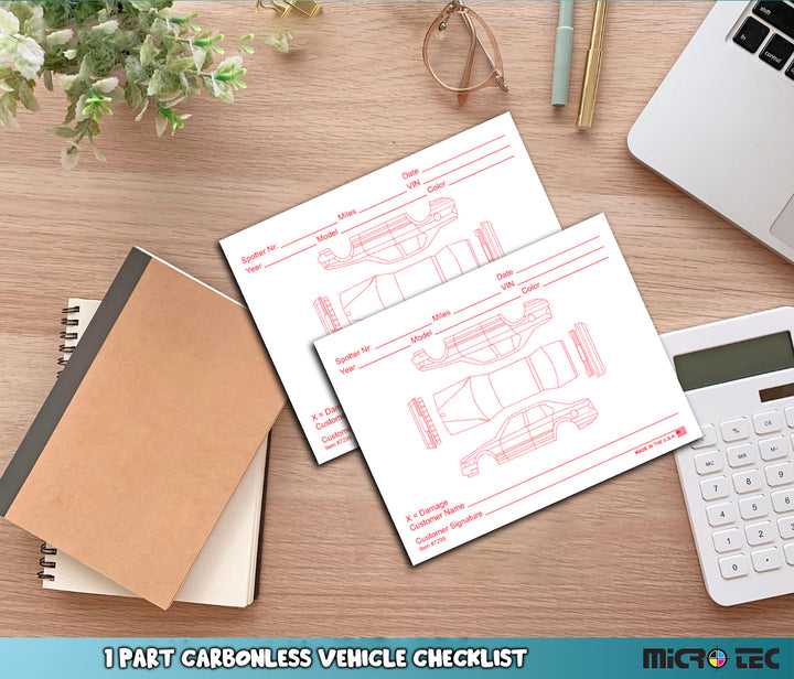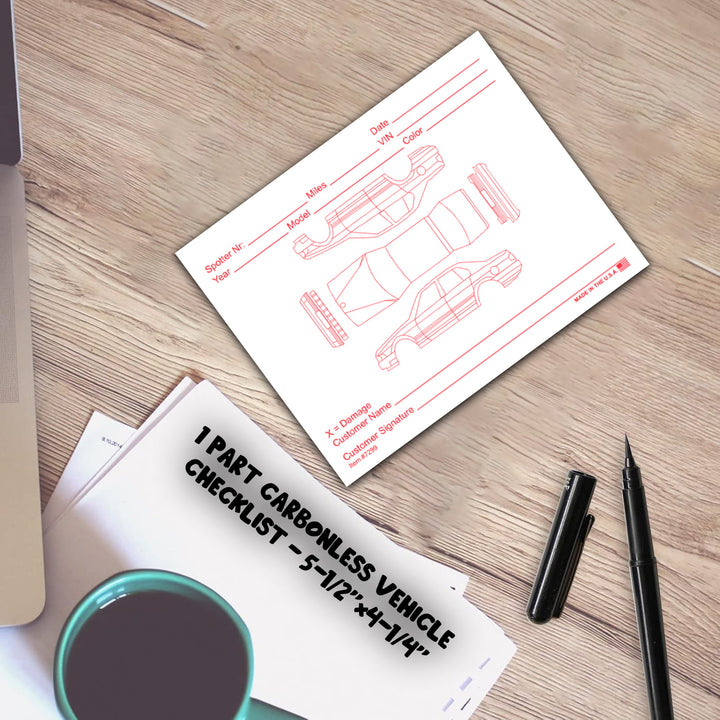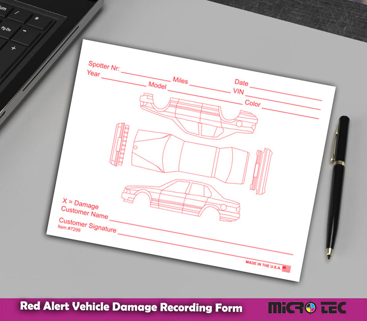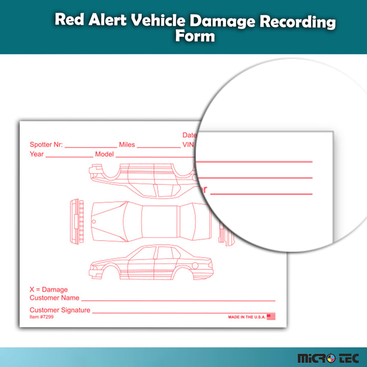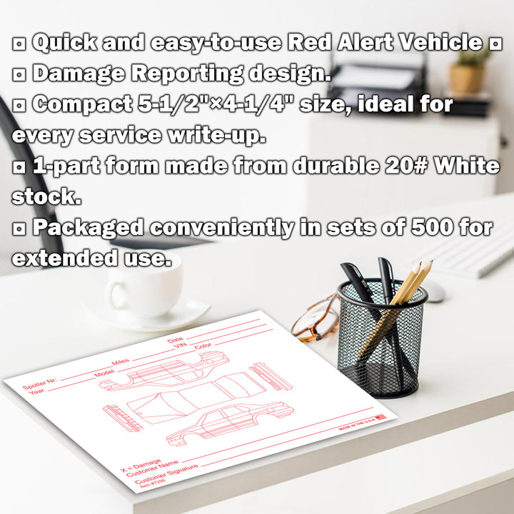Red Alert Vehicle Damage Recording Form - 1 Part Carbonless Vehicle Checklist - 5-1/2"×4-1/4" Essential for Service Write-Ups - White