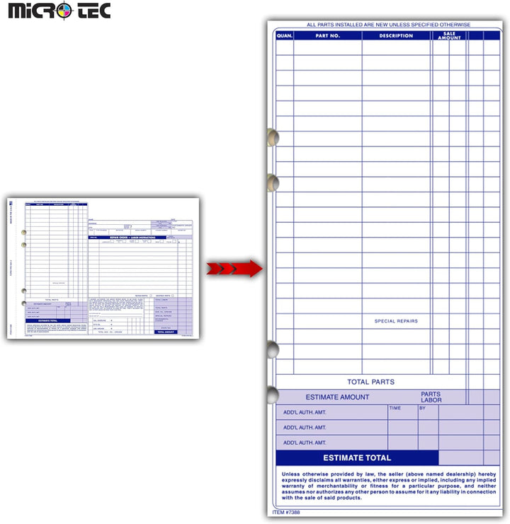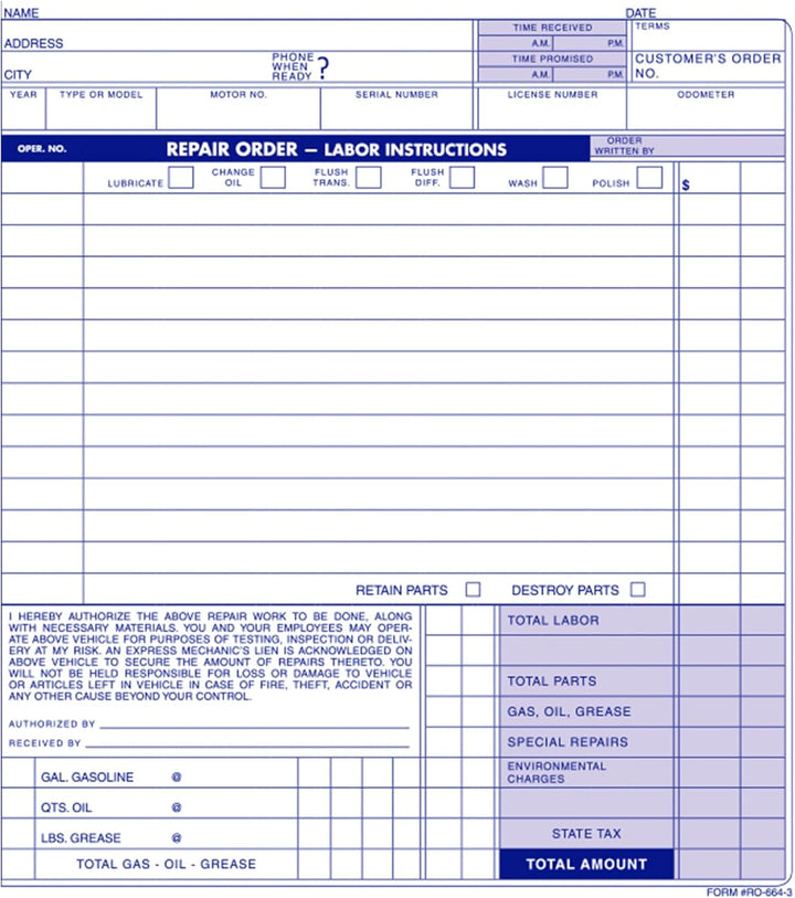 • FORM RO-546H-3PT: Designed with enhanced durability and higher-quality paper, ideal for heavy-duty use in high-traffic service centers.