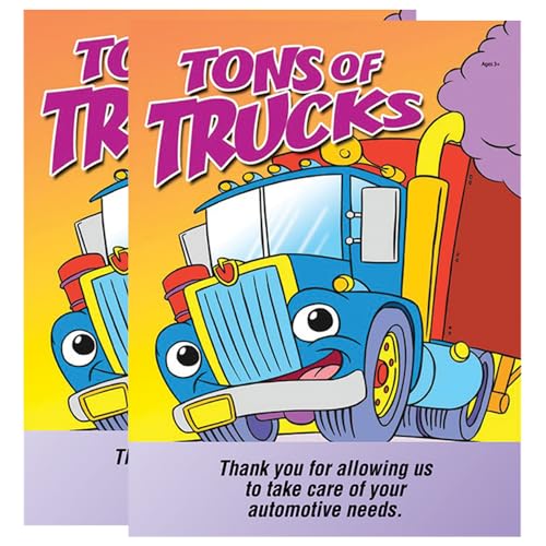 Tons of Trucks Children's Coloring Book for Automotive Dealerships and Service Departments - 8" × 10.5" Book (16 Pages), Set of 4 Designs for Engaging Young Visitors