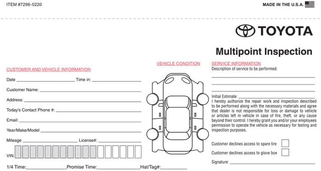🚗 EFFICIENT 3 PART SYSTEM: Designed with a carbonless snap-out format, these multi-part inspection forms eliminate the hassle of carbon paper and create clean duplicate copies for Toyota service records, fleet management inspections, and automotive office paperwork.