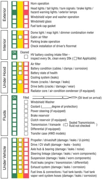 Toyota Vehicle Inspection Checklist - 3 Part Snap