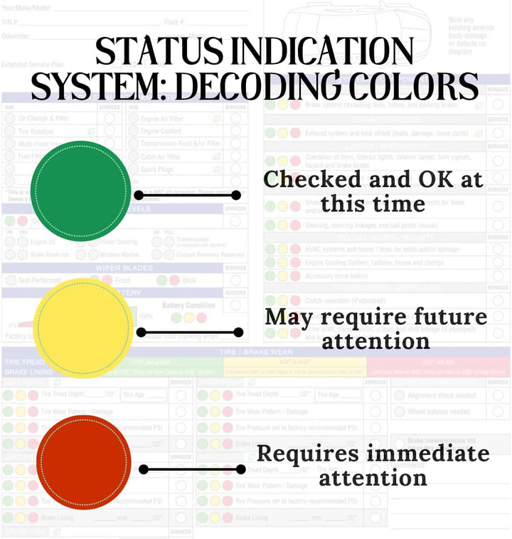 🚗 VIBRANT FULL COLOR PRINTING: Each section features full-color printing for clear readability and professional appeal, ideal for mechanics, auto service centers, shop inspection reports, and detailed service checklists.