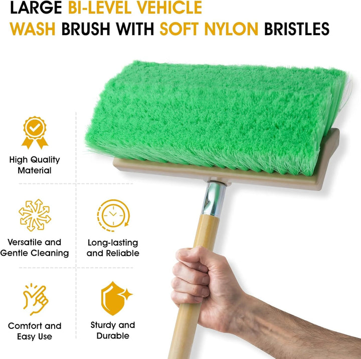 LARGE 10-INCH HEAD: Wide brush head covers more surface area per stroke, reducing cleaning time while delivering thorough cleaning on large vehicles including trucks, RVs, boats, and trailers.