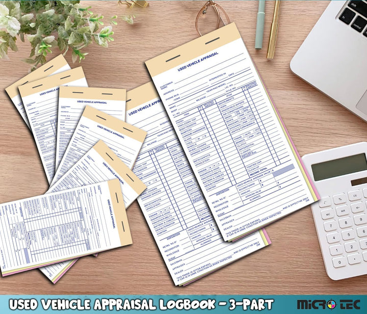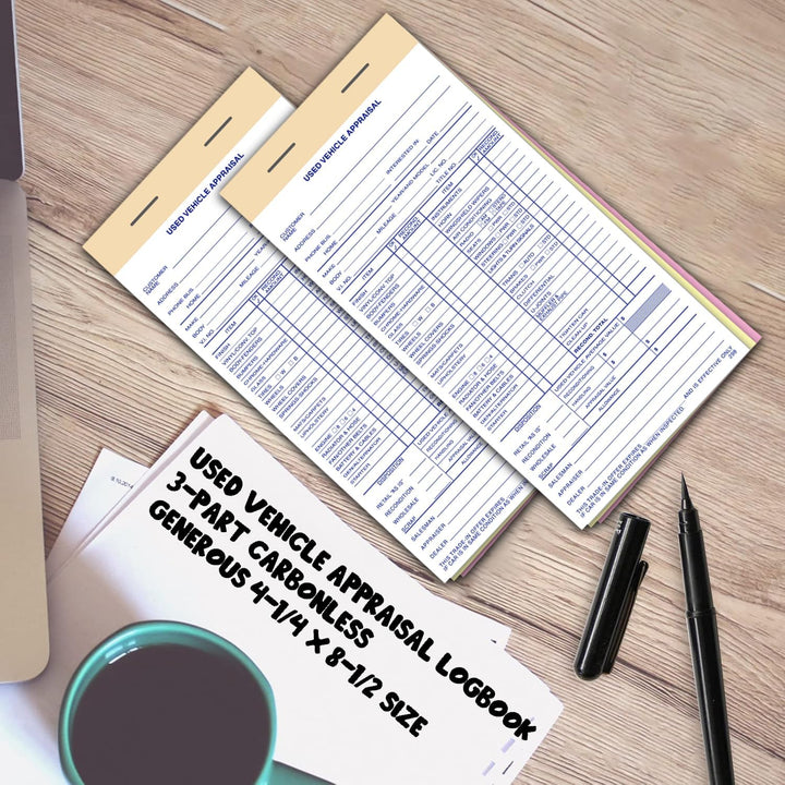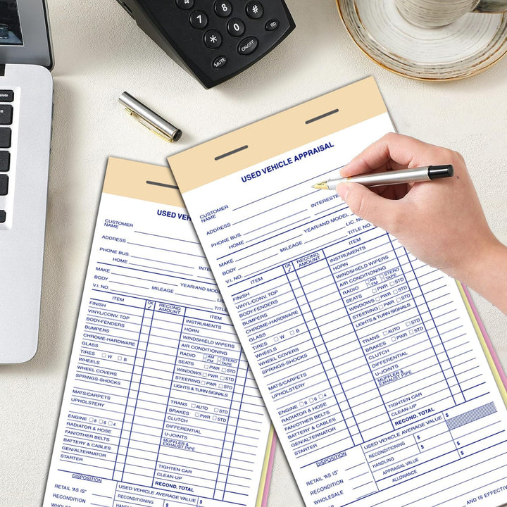Maximize your efficiency and accuracy with our Used Vehicle Appraisal Book. This meticulously designed book is an essential tool for dealerships, appraisers, and anyone involved in the buying and selling of used vehicles. Each form in the book is divided into three parts: one for the customer, one for administrative purposes, and one that remains in the book for your records. This 3-part snap-out design ensures you can easily distribute the necessary documentation while keeping a permanent record for your records. The heavy-duty wrap-around cover is a standout feature of this appraisal book. It is crafted to prevent write-through, meaning that the pressure from writing on one form will not transfer to the forms beneath it. This ensures all forms remain clean and legible, maintaining the professional standard required in vehicle appraisals. The durable cover also protects the forms from damage, ensuring they stay in pristine condition no matter where you take your book. Convenience is key with the compact size of 4.25" × 8.5". This makes the book highly portable, allowing you to carry it easily in your glove compartment, desk drawer, or briefcase. Whether you're conducting appraisals on the lot, at a client's home, or in your office, this book provides the flexibility and ease of use you need. With 25 forms per book, you'll have an ample supply for numerous appraisals, making it an economical and practical choice for professionals in the automotive industry.