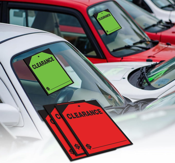 Elevate your clearance sales with our Vibrant 'Clearance' Window Price Stickers & Hang Tags. Designed to catch the eye with their bold color, these stickers and hang tags are perfect for car dealerships and retail stores. Measuring 7" x 11", they provide ample space for displaying clearance prices prominently, ensuring they're impossible to miss. Their durable construction ensures longevity, while easy-to-use adhesive backing and hang tag strings make installation a breeze. Make a statement with your clearance sales and drive traffic to your events with these attention-grabbing stickers and hang tags..