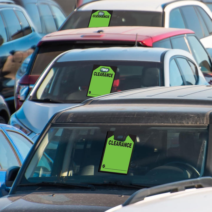 Vibrant Green Clearance Window Price Stickers & Hang Tags – Large 7" x 11" Vinyl Decals for Car Dealerships, Retail Stores & Automotive Sales Promotions