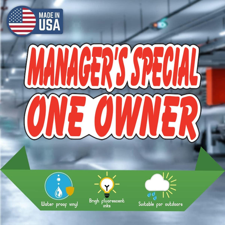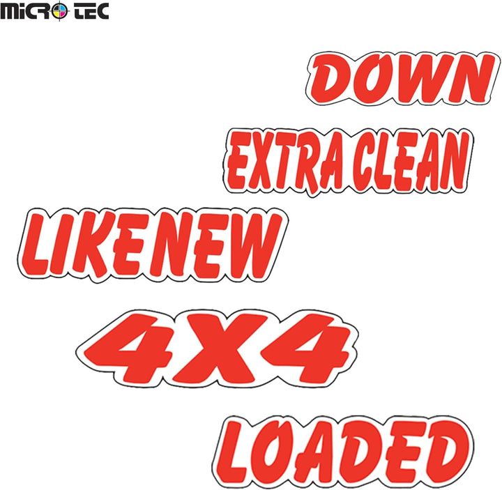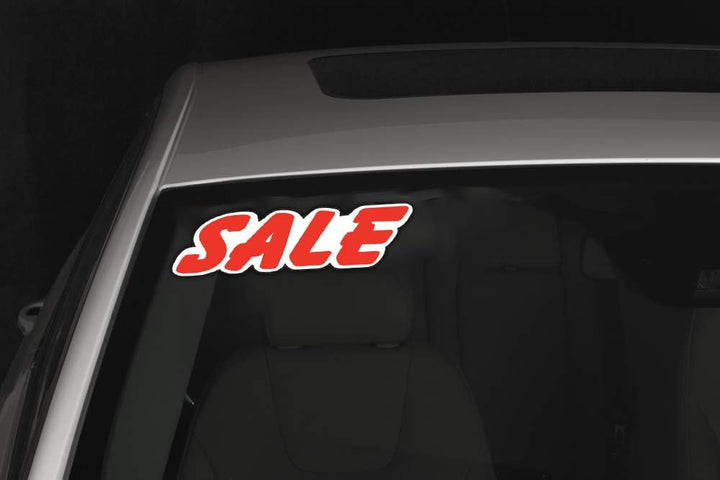 Eye-Catching High-Visibility Design: Features bold red text on a clean white background to ensure maximum readability and instant attention on dealership windows and vehicles.