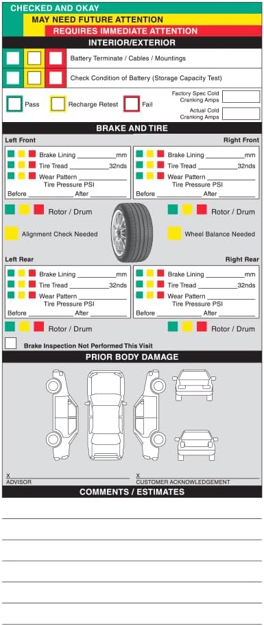 📋 USER-FRIENDLY LAYOUT: The clean, structured design makes recording and reviewing inspection results simple, improving workflow efficiency and streamlining service lane documentation for auto shops and dealerships.