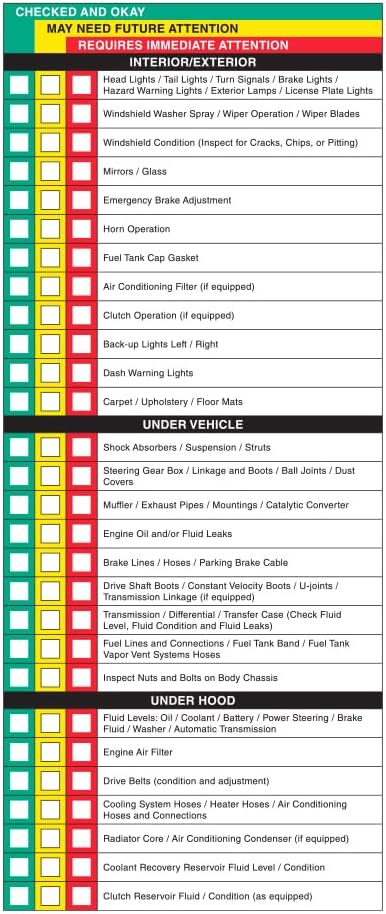 Generic – Visual Vehicle Inspection Report 2 Part Carbonless Vehicle Checklist - General Vehicle Checkup Report - 8-1/2"×11" Snap-Out - White, Canary