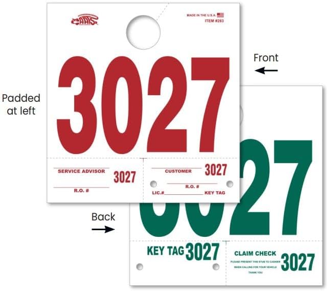 The White Service Dispatch Numbers offer practicality and durability, designed for efficient use in automotive service centers and beyond. Each pad includes 50 sheets made from sturdy 100# white tag stock, ensuring resilience against handling and environmental factors. With dimensions of 5-1/2" × 6-1/2", these dispatch numbers provide ample space for recording essential details like service information, customer data, and vehicle specifics. The pads are conveniently padded for ease of use, facilitating quick tear-off of sheets as needed during busy service operations. They feature a 1-1/4" hole diameter, allowing them to be hung on hooks or pegs for convenient storage and accessibility. The white color enhances visibility and clarity of information, ensuring that service personnel can easily read and update the dispatch numbers during daily tasks. Designed to streamline workflow and organization, these dispatch numbers are ideal for tracking jobs, scheduling appointments, and maintaining accurate service records. Their robust construction and generous quantity—packaged in sets of 1000 each—ensure a reliable and long-lasting supply, making them a cost-effective choice for high-volume service environments. Whether used in automotive repair shops, service departments, or other service-oriented businesses, the White Service Dispatch Numbers provide a professional and efficient solution for managing customer service requests and maintaining operational efficiency.