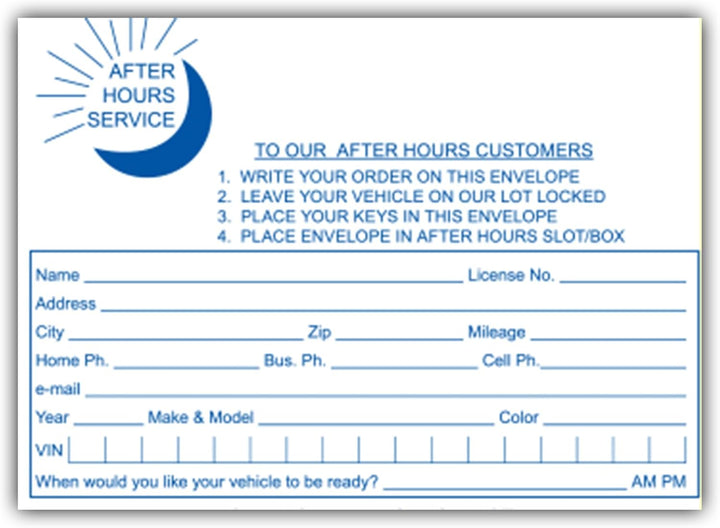 🌙 NIGHT DROP FUNCTIONALITY: Specifically designed for after-hours key drop services, these envelopes ensure safe, efficient handling for dealership service departments, mechanic shops, and vehicle maintenance businesses, supporting reliable after-hours customer drop-off.
